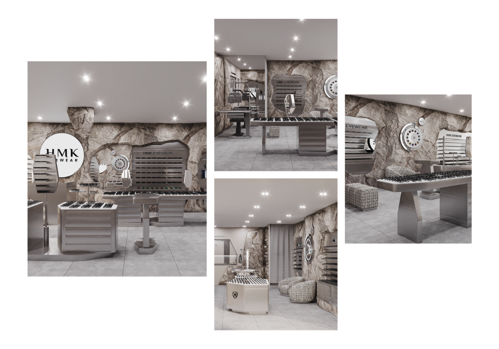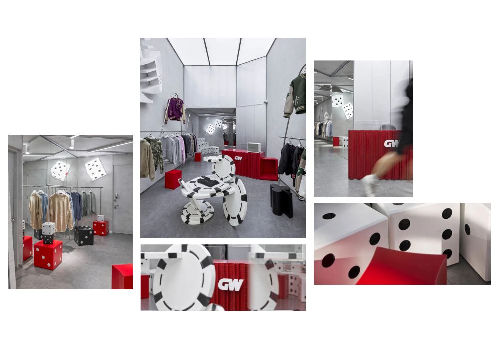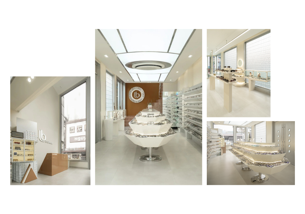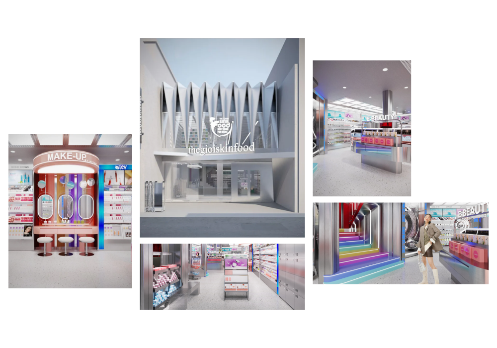 Việc sử dụng các hình khối mạnh mẽ giúp phân chia không gian một cách rõ ràng, đồng thời mang lại cảm giác hiện đại, có chủ đích. Sự kết hợp giữa hình khối, ánh sáng và bảng màu ấn tượng góp phần nâng cao hiệu quả trưng bày sản phẩm, thu hút ánh nhìn và tăng trải nghiệm của khách hàng.